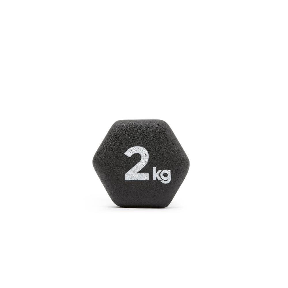 Pair of 2kg dumbbells Neoprene coated cast iron core Hexagonal design prevents rolling Ideal for both isolated and compound movements Features the weight marking and adidas logo Colour: Black